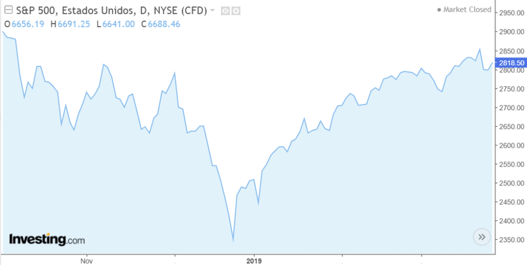 Índice SP500 durante el cierre gubernamental de 2019 (Fuente Investing.com)
